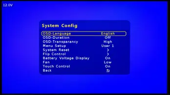 The system menu has standard controls such as language, fan speed, and settings for the on-screen text. You can change the opacity of the menu, flip the entire image or just the menu and you also have user memory to save menu settings.